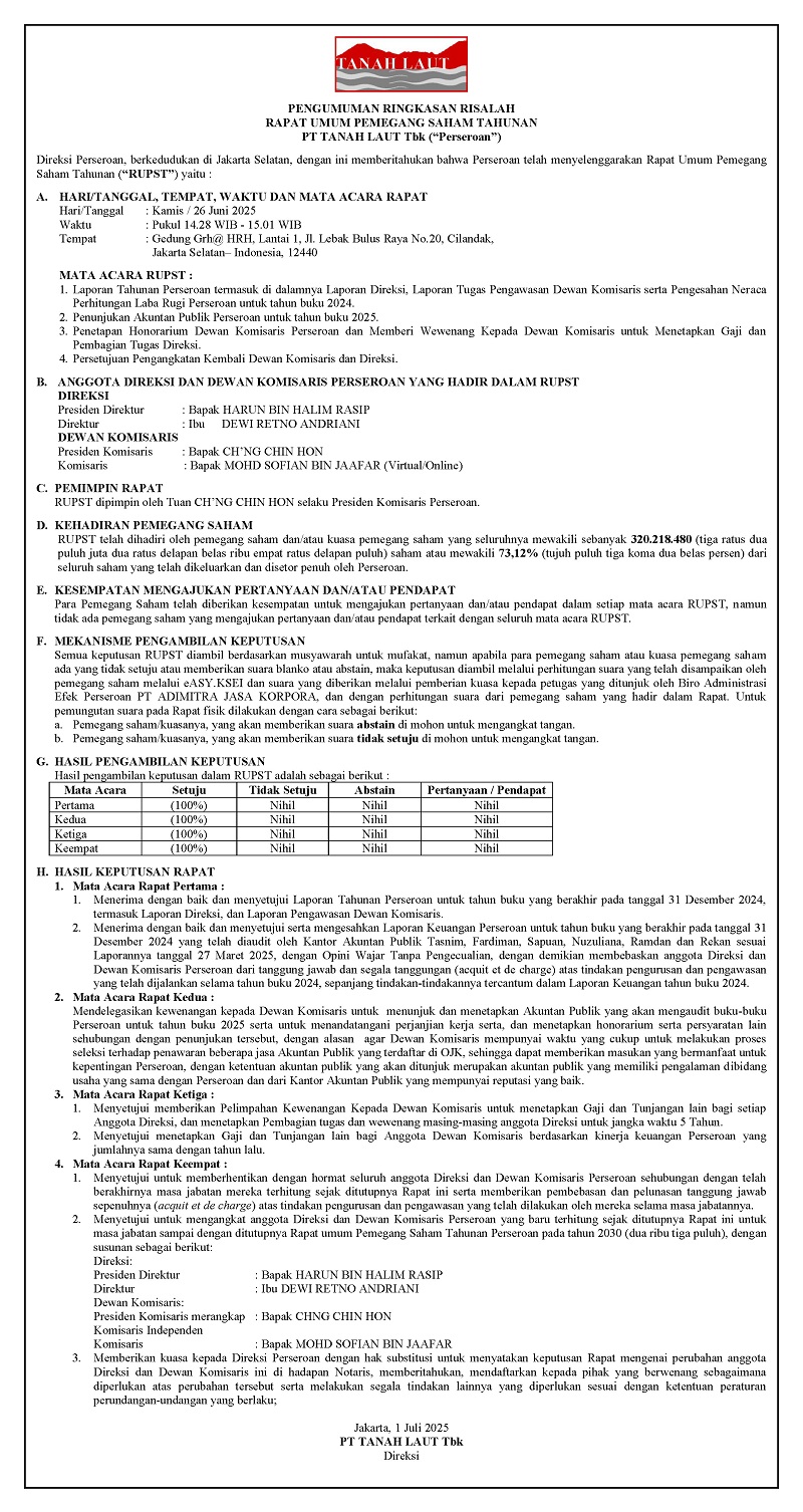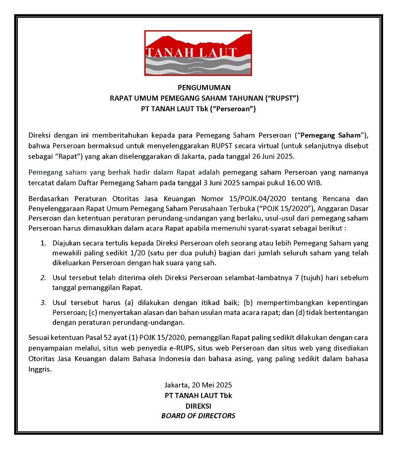 Copyright © PT Tanah Laut Tbk. All rights reserved.